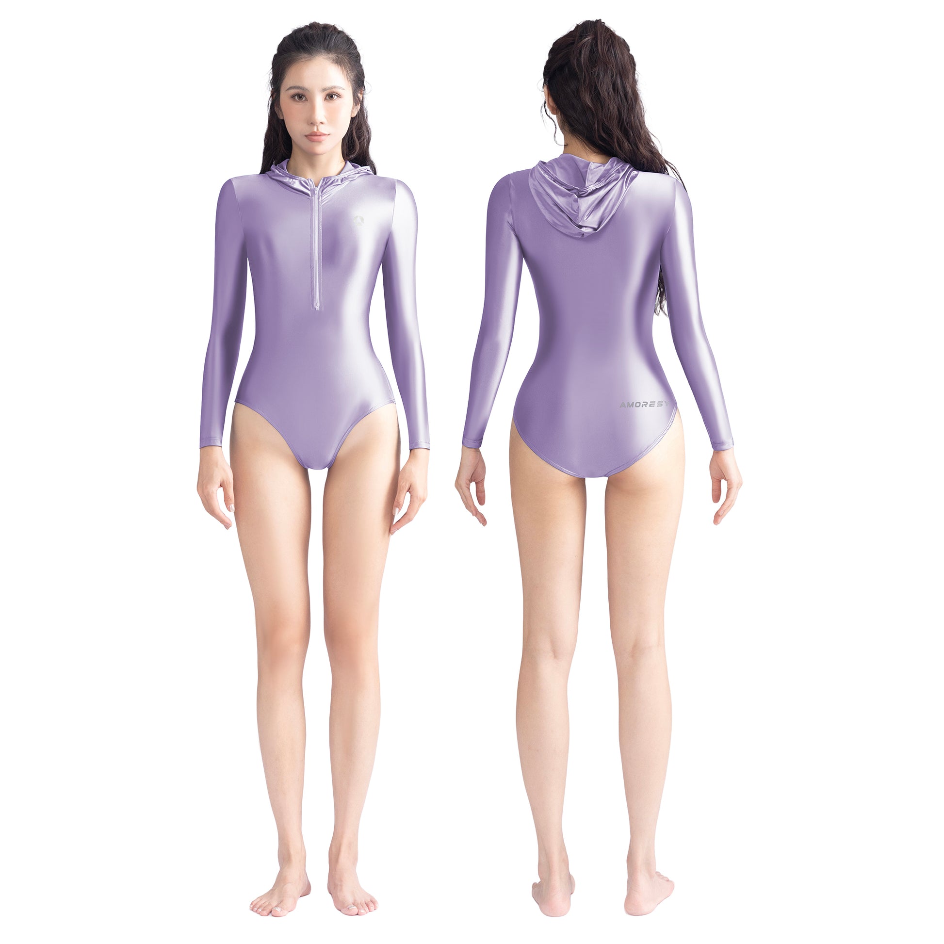 Freya Long-Sleeve Front-Zip Hooded Swimsuit Leotard