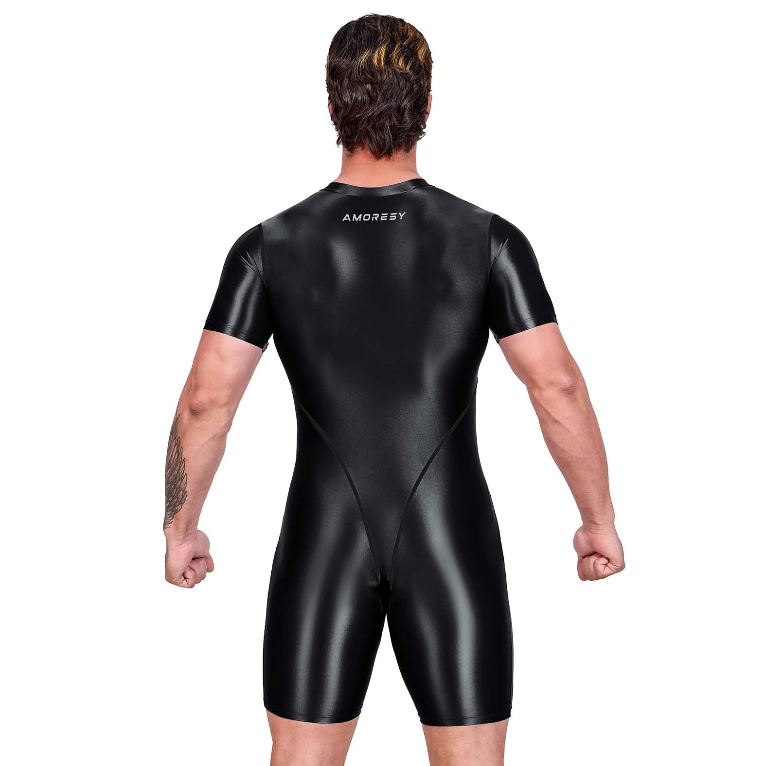 The awesomely shiny spandex fabric is expertly stitched with flatlock seams, ensuring strength and stretch in perfect harmony. The look is finished with AMORESY logos on the front and back, our hallmark of elite design. Whether for high-intensity training, casualwear, or sheer visual domination, the Olympus bodysuit is designed to dazzle.