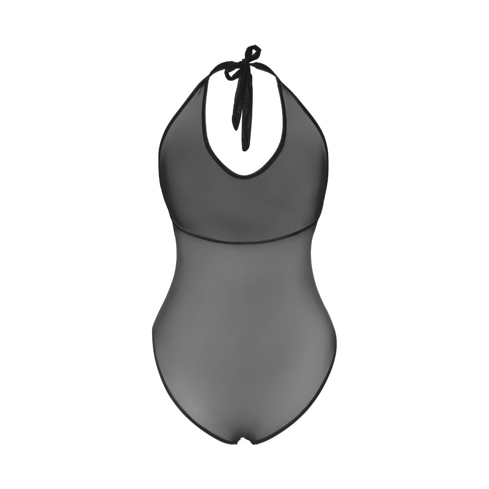 Vivaciti Sheer Deep-V Crossover Halterneck Bodysuit