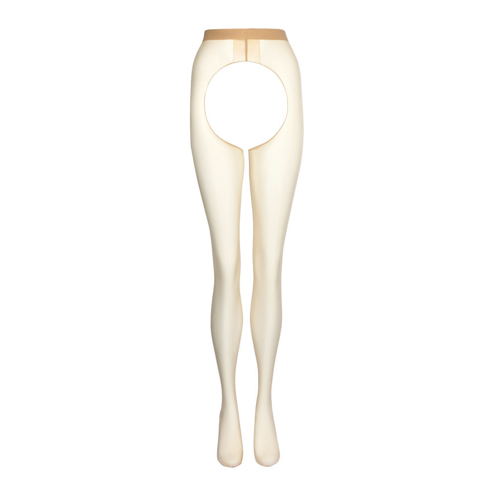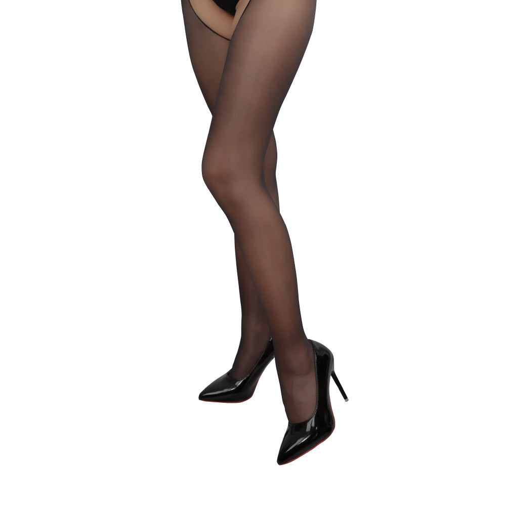 Some tights are subtle. Some crotchless designs are subtle. Not these Brazeniti tights! These are the very epitome of boldness. Completely sheer tights, ultra-thin, super-shiny and with a brazenly enormous cut-out on both back and front creating the most daring crotchless tights you are ever likely to wear. This is absolute exposure.