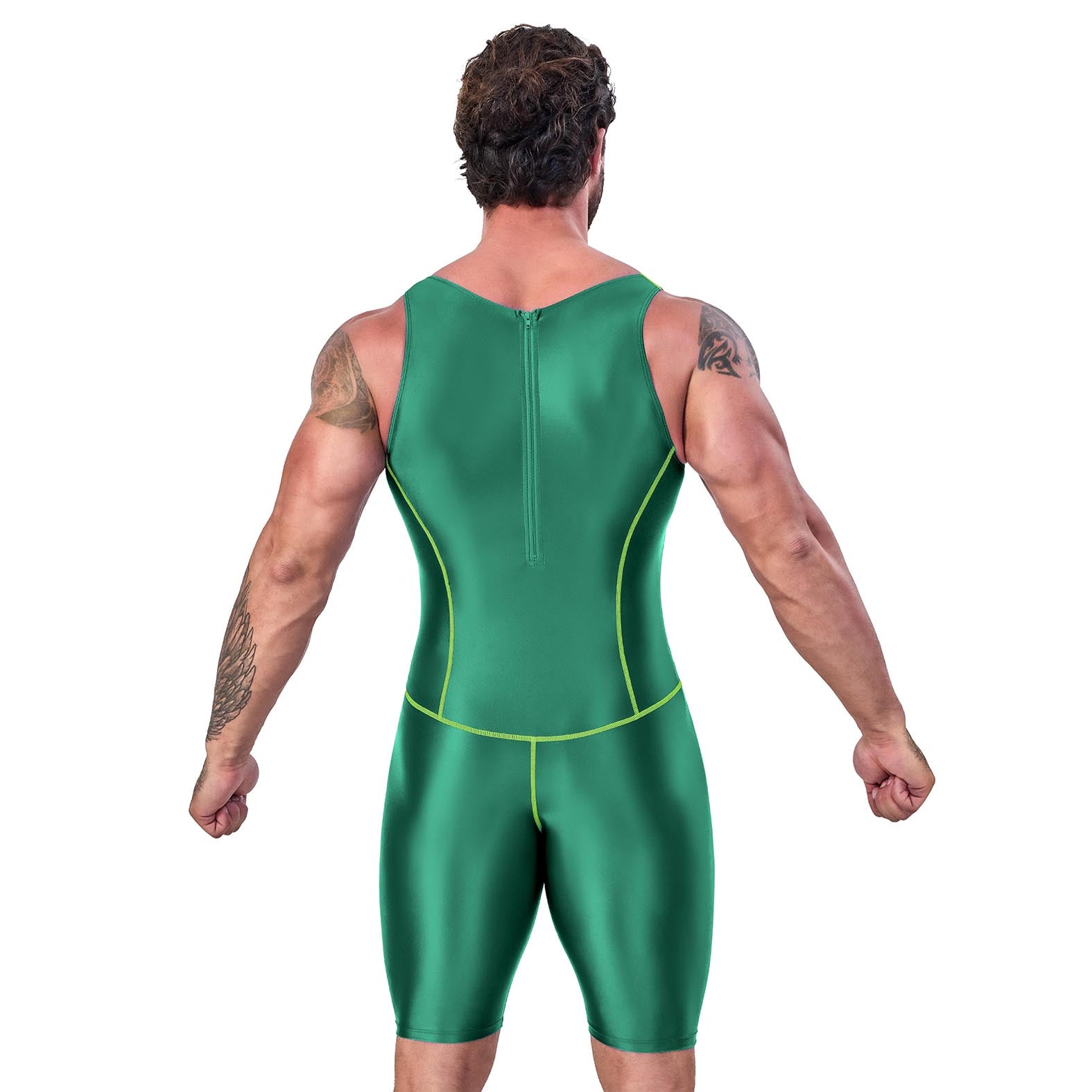 The Helion singlet is crafted for those who dominate every space they enter. Cut from our signature Sliktex Classic spandex, this ultra-gloss compression suit coats the body with an electrifying liquid-shine finish. Designed to highlight muscular definition, Helion fuses strength and style into one seamless package. Engineered with color-contrasting flatlock stitching, every contour is reinforced for flexibility, durability, and zero chafe.