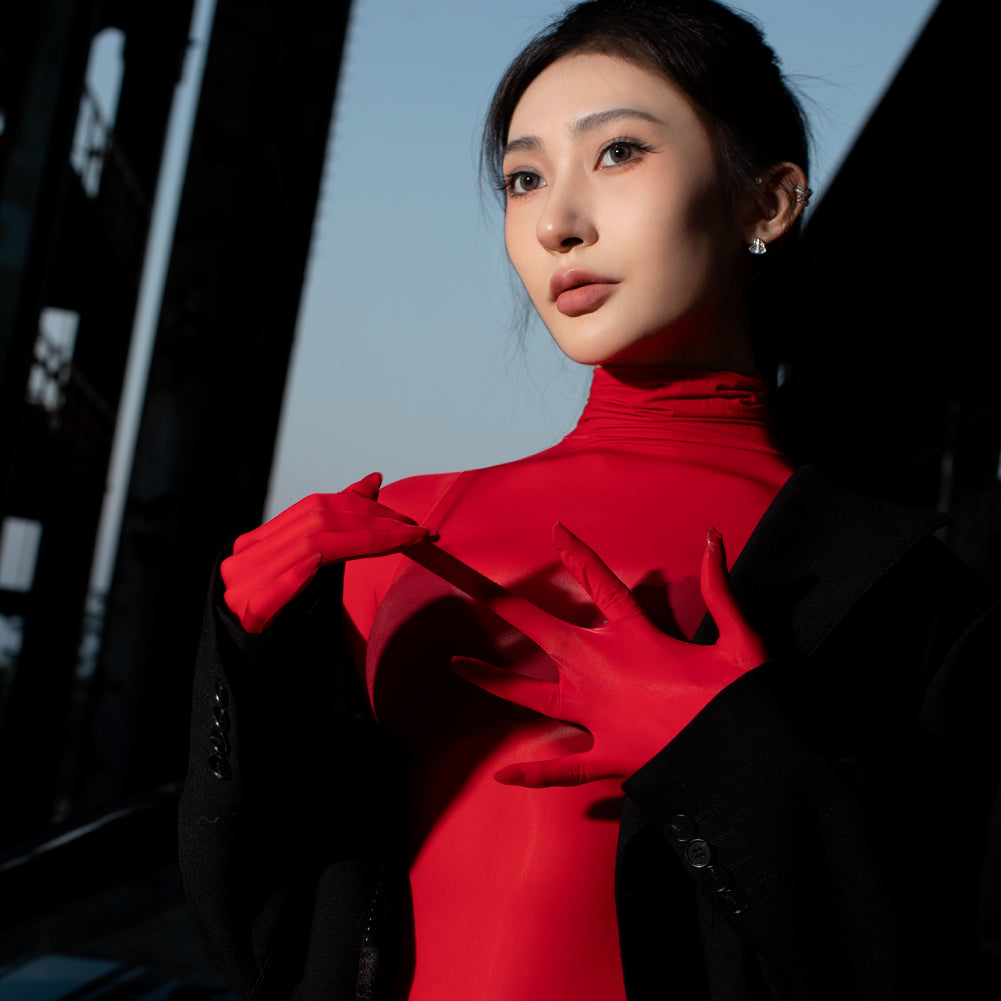 Just imagine the styling possibilities for a sensationally shiny, sheer bodysuit like this. Wear it under a short dress to create a fantastic, eye-catching layered look. Or maybe go for a bolder style and simply wear the bodysuit with black leather boots and some sexy underwear underneath. If you feel really wild, just lose the underwear, and you have a look that will never, ever be forgotten.