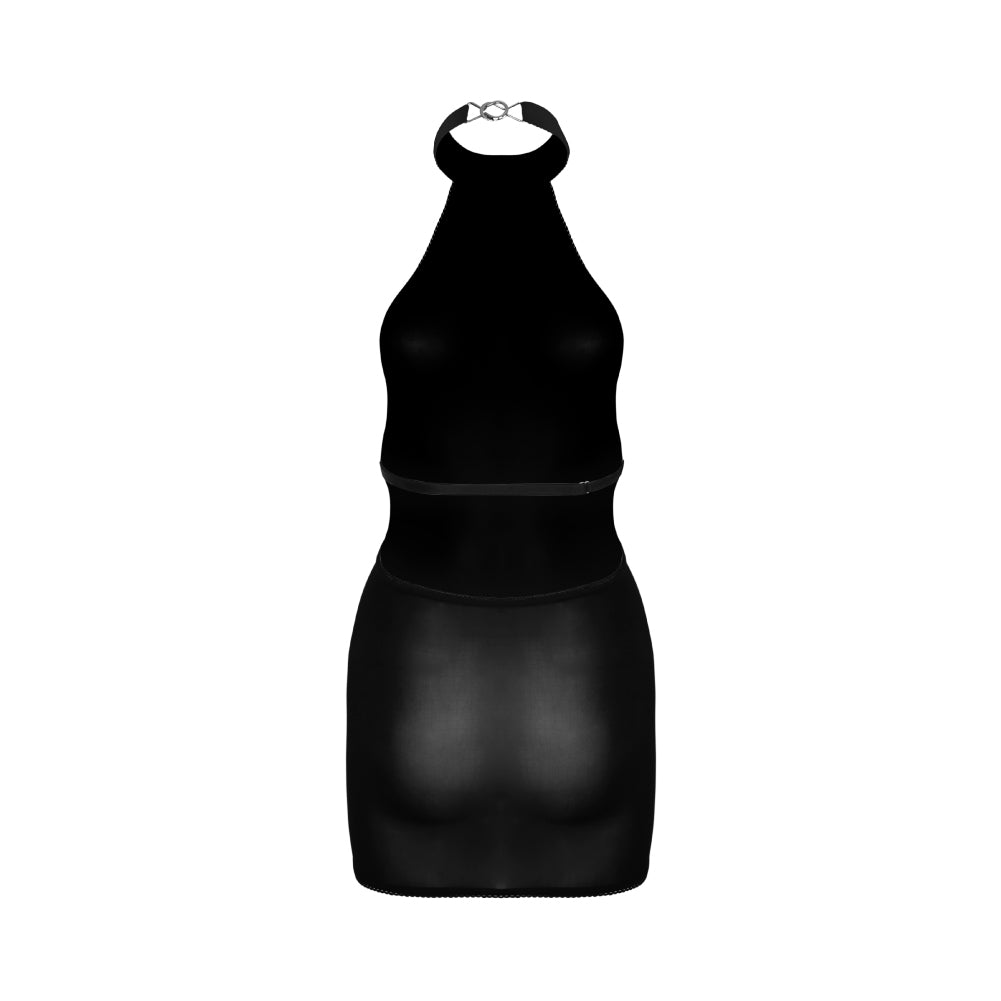 The Sizziti minidress is simply sizzling. While a black minidress is a classic look, having the dress made entirely from completely sheer, ultra-shiny, super-stretch fabric is certainly a much more sultry version. Despite being backless, the support strap keeps the dress nicely in place. The high neckline creates the illusion of modesty, despite the overtly sexy vibe.