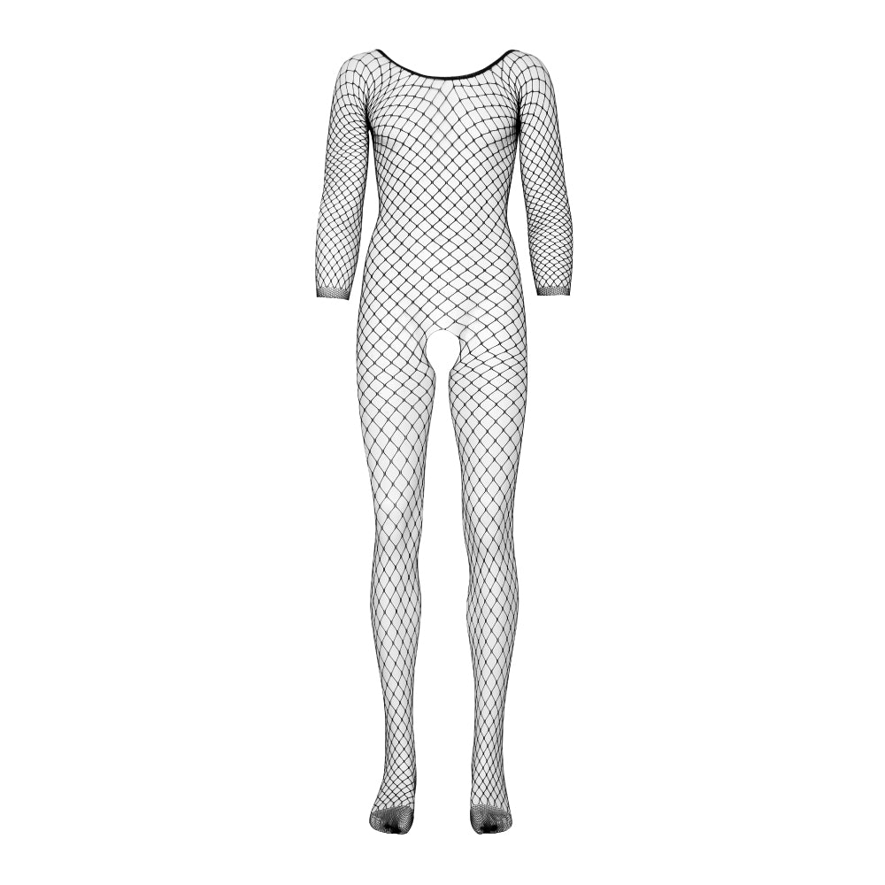 The Solemniti bodysuit is all about embracing both body and fashion at the same time. The see-through fishnet mesh creates the canvas with which to showcase the body underneath, while the off-shoulder neckline and edgy style add character. Choose from a fine or wide mesh option.