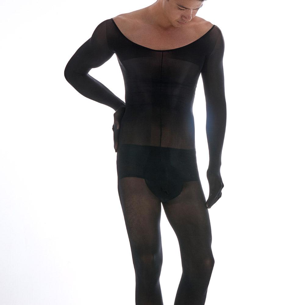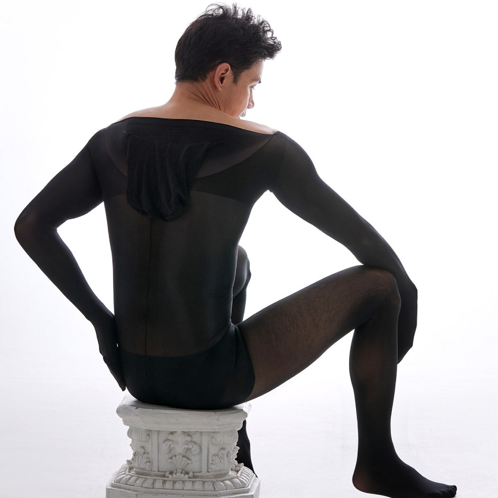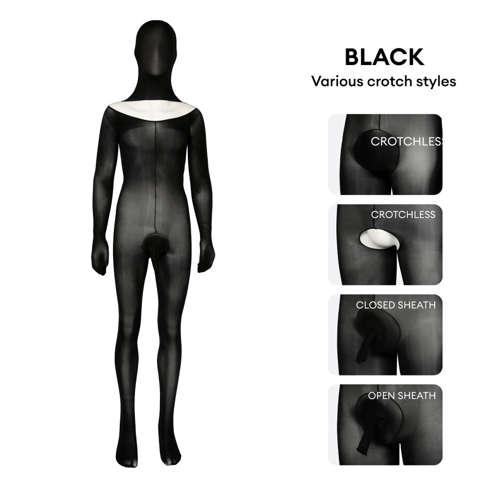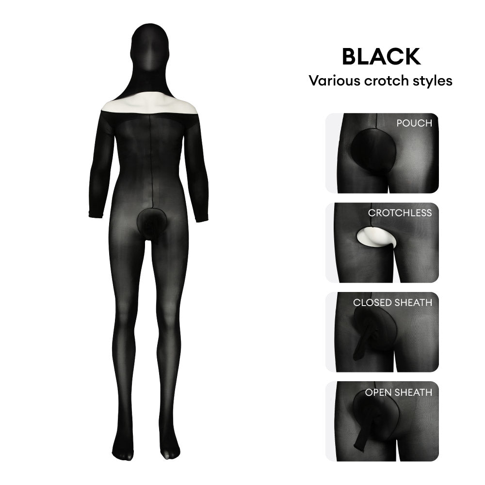 Vigilanti Hooded Ultra-Shiny Men's Sheer Bodysuit